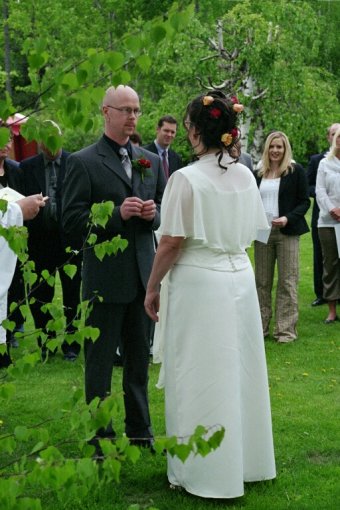 -Trä nu ringen på hennes finger, men på rätt sådant.